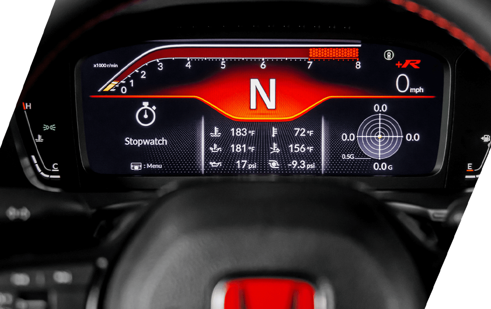 O Civic Type R conta com freios a disco nas 4 rodas com tecnologia ABS (Antilock Brake System) e EBD (Electronic Brake Distribution) para melhor controle e eficiência de frenagem em situações emergenciais.